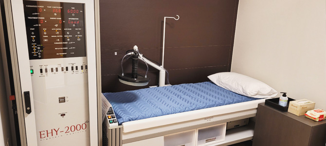 인체에 고주파 전류를 유도해 열을 발생, 선택적으로 암 조직에만 에너지를 전달하여 암세포의 세포막을 자극하여 자연사하도록 유도하고 서서히 파괴시켜 주는 치료 장비입니다. 열이 발생하면 생체 대사가 높아져 암세포에 산소 공급을 차단하고, 증식을 억제해 호전될 수 있습니다.